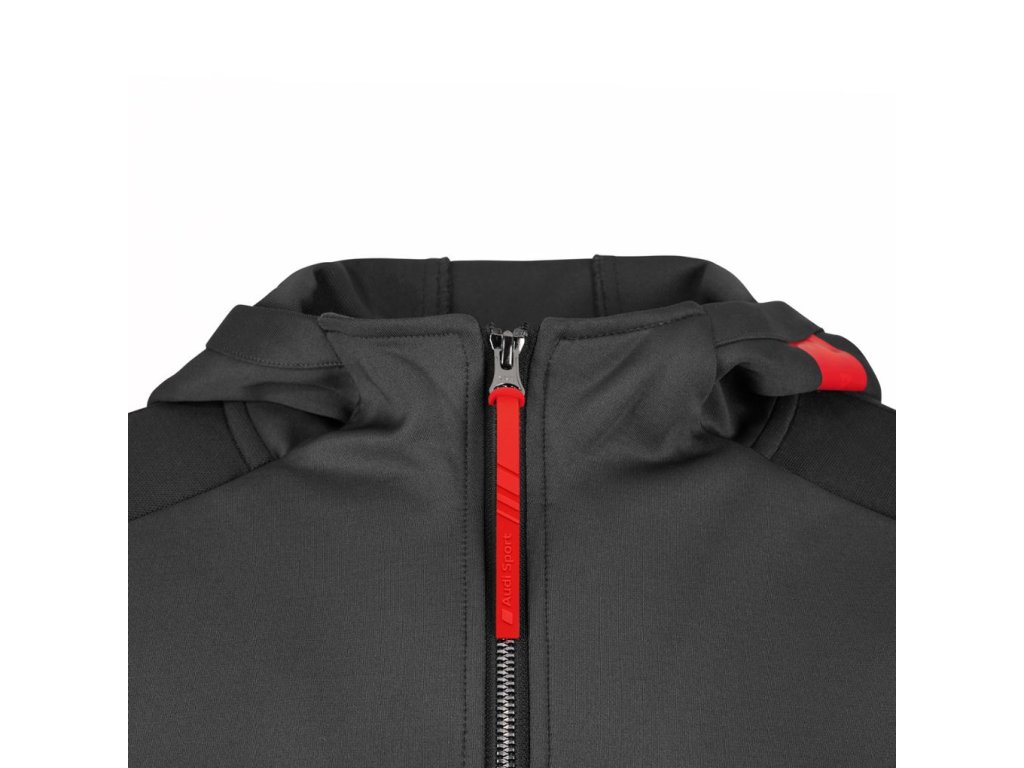 - Audi logo na vnitřní straně štítku na krku, logo Audi Sport na štítku jezdce zipu