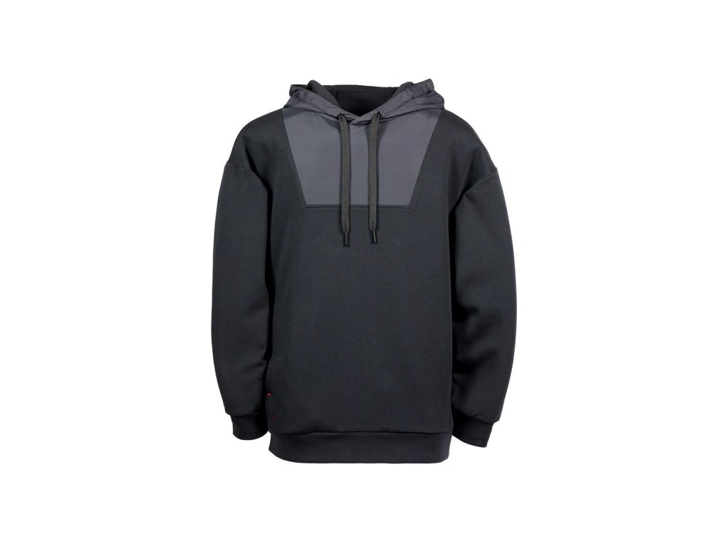 - mikina s kapucí a vsadkou z kontrastního materiálu