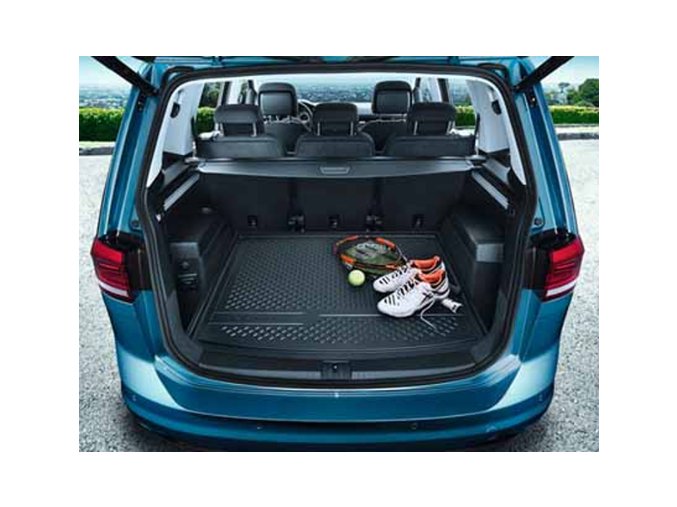 - pro použití v 5-místném Touranu s variabilní ložnou plochou prosím sklopte dolů v místě k tomu určeném úzký pruh vložky zavazadlového prostoru (v oblasti zadních sedadel)